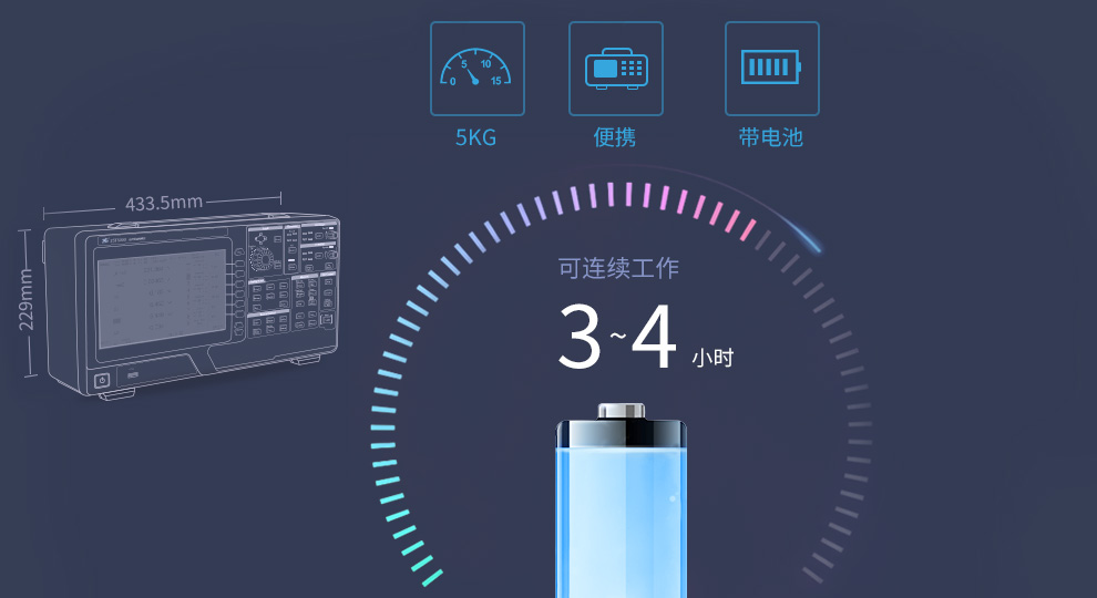 ZIT6000是便携式逆变器检测仪,紧凑设计,千锤百炼,重量仅5KG,在狭小的配电厢中也能来去自如,另外,它内置锂电池,可独立供电长达3-4小时,完全满足电力机车的随车测试需求。